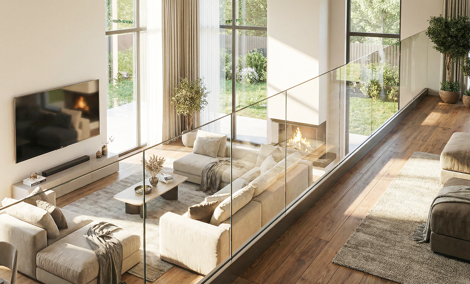 Цельностеклянные ограждения органично дополнят классический или современный интерьер. Они визуально расширяют пространство и делают дом более светлым.