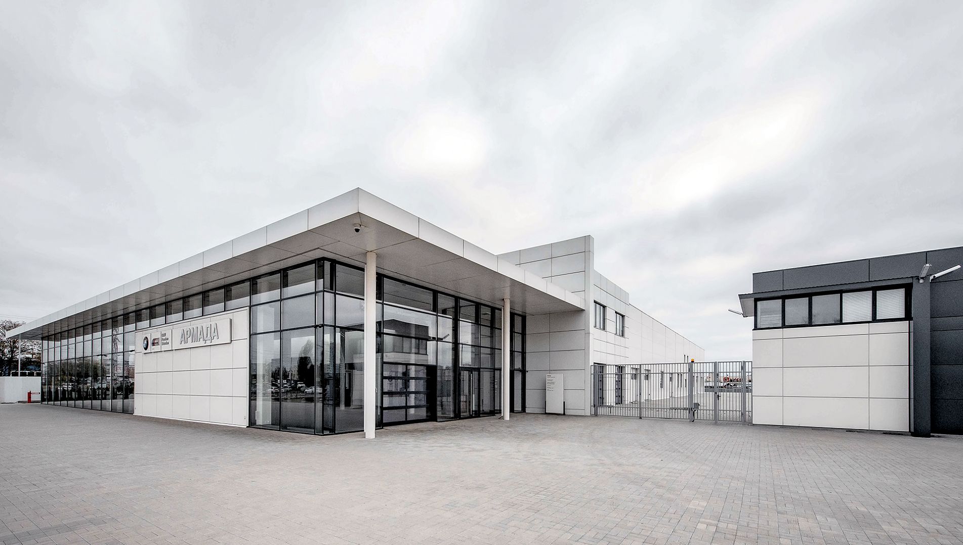 Важная особенность автоцентра BMW — уверенный лаконичный фасад, подчеркивающий престижность торговой марки в сочетании со строгим стилем, характерным для немецкой архитектуры.
