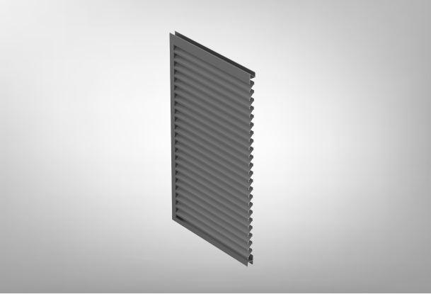 The ventilation louvre is a rectangular frame made of vertical and horizontal profiles, butt jointed together, with brackets mounted consecutively at a certain spacing for fastening horizontal profiles (louvres). The louvres have a curved shape, which ensures effective ventilation and prevents moisture from getting into the premises. Corner joints have been sealed to ensure reliable protection against moisture in the system. This system is characterised by simplicity of assembly and the absence of single-piece plastic accessories. The unique design of the brackets allows quick assembly of ventilation grilles from 300 mm to 2500 mm high. The brackets are securely fastened into the vertical frame profile of the ventilation grille width-wise and rest one on top of the other height-wise. The system has an option to additionally fasten each bracket (besides the required base bracket) and each louvre with self-tapping screws.