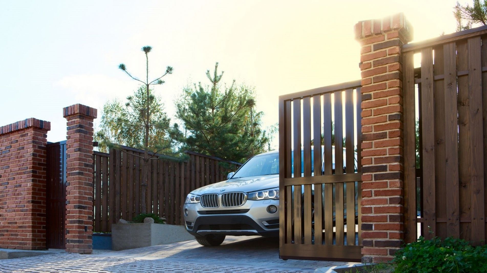 Simple and convenient structures for vast house sites. Swing gates can be opened both towards the road and towards the house. The products are resistant to strong winds and can cover openings up to 9 m wide.