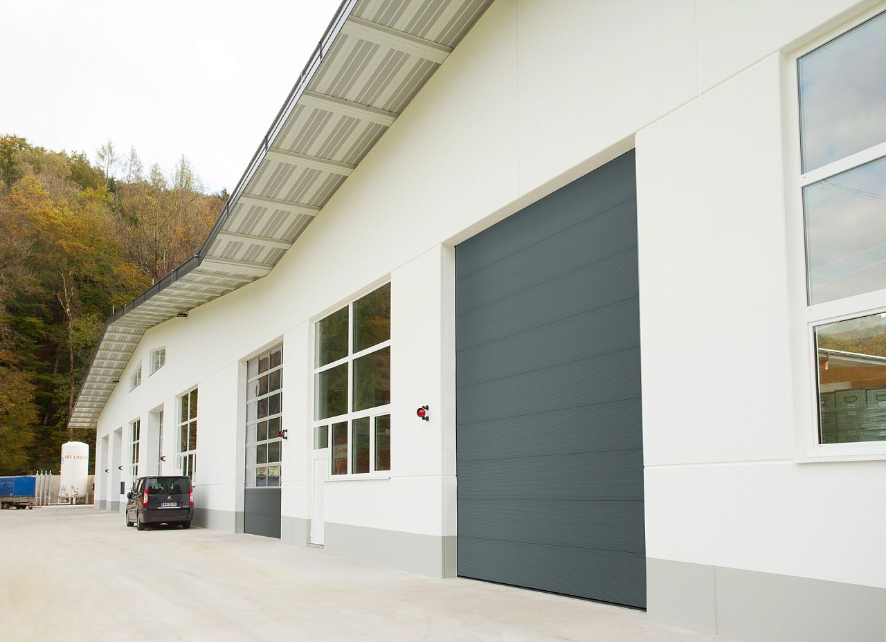 Современное решение для управления секционными воротами, установленными на производственных предприятиях.