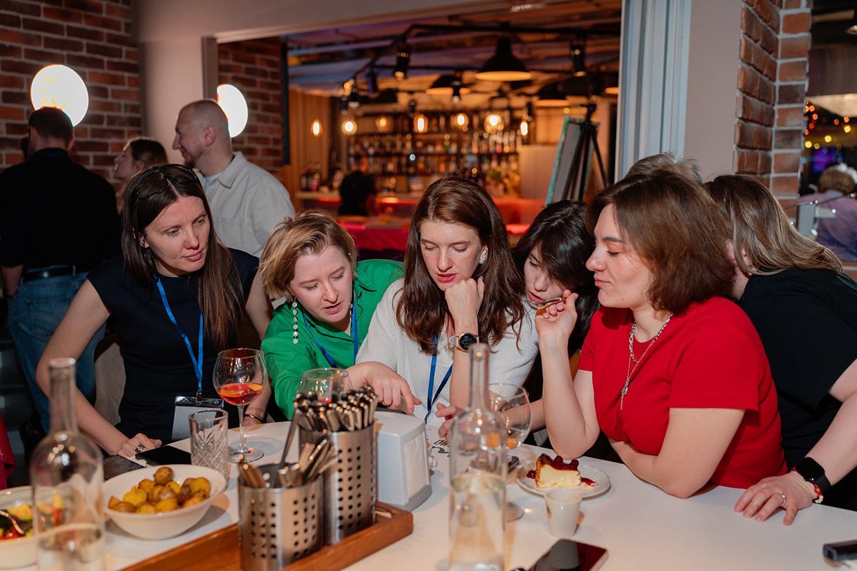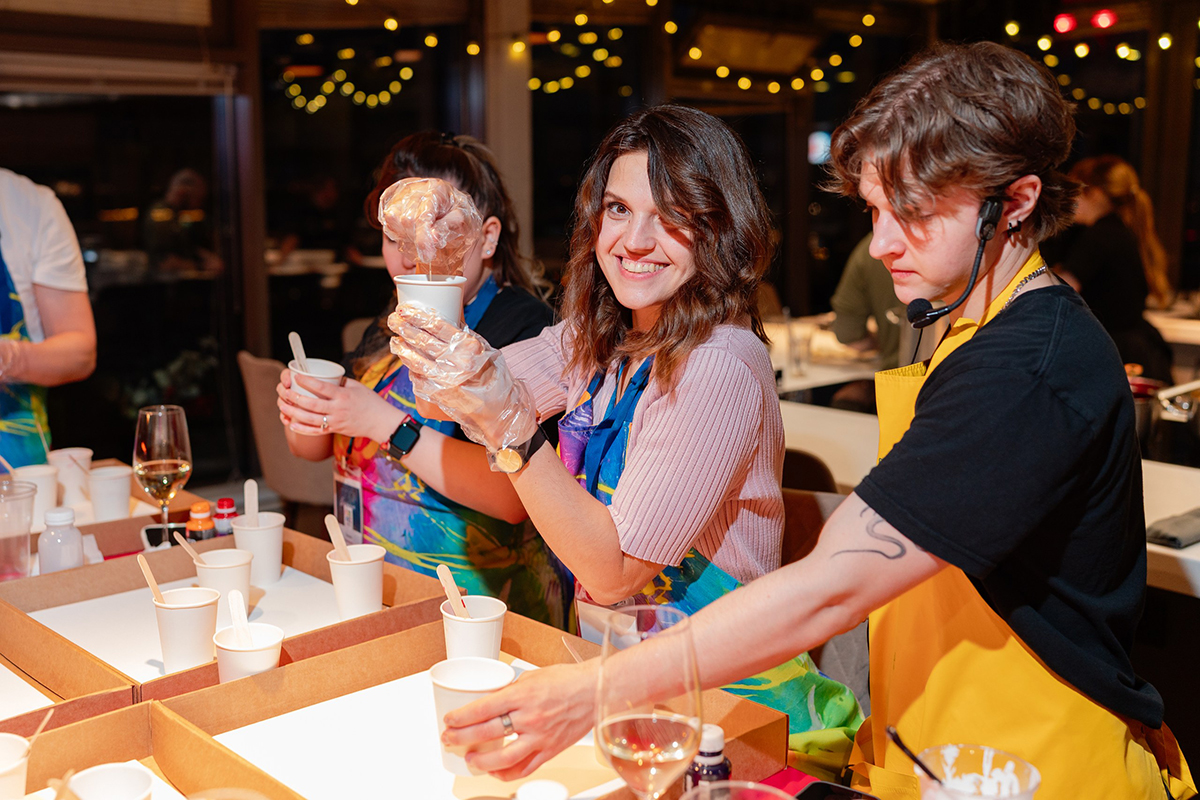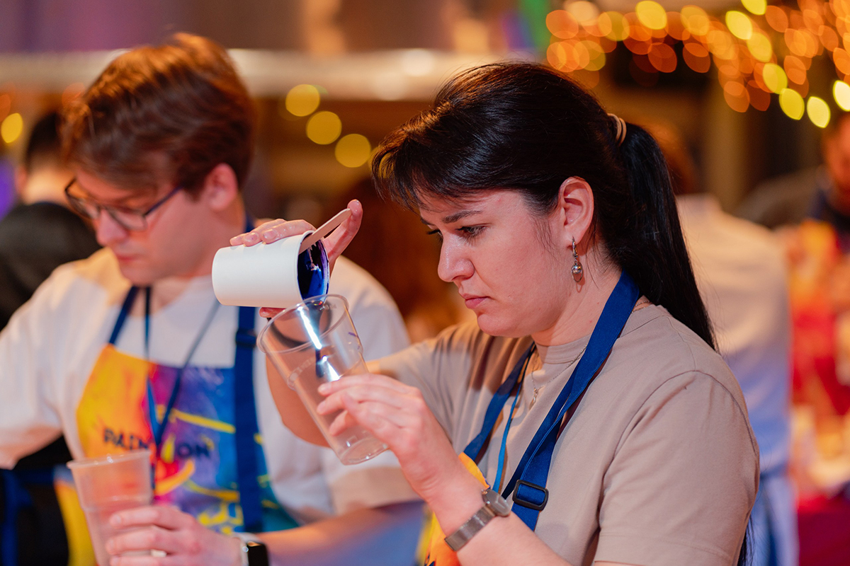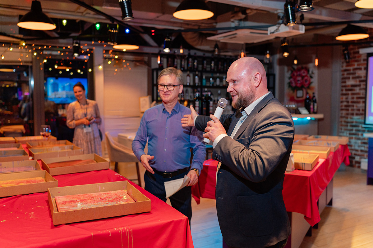 После официальной части участники взялись за творчество. Задачей архитекторов было создать картину в современной технике флюид арт, исходя из вводных от мастера‑инструктора. Новоиспеченные художники активно помогали другу, демонстрируя принцип командной работы, которому следуют и в профессиональной жизни.