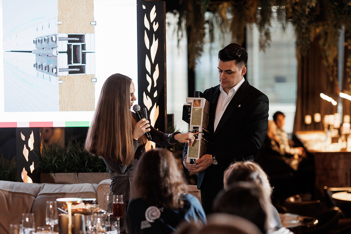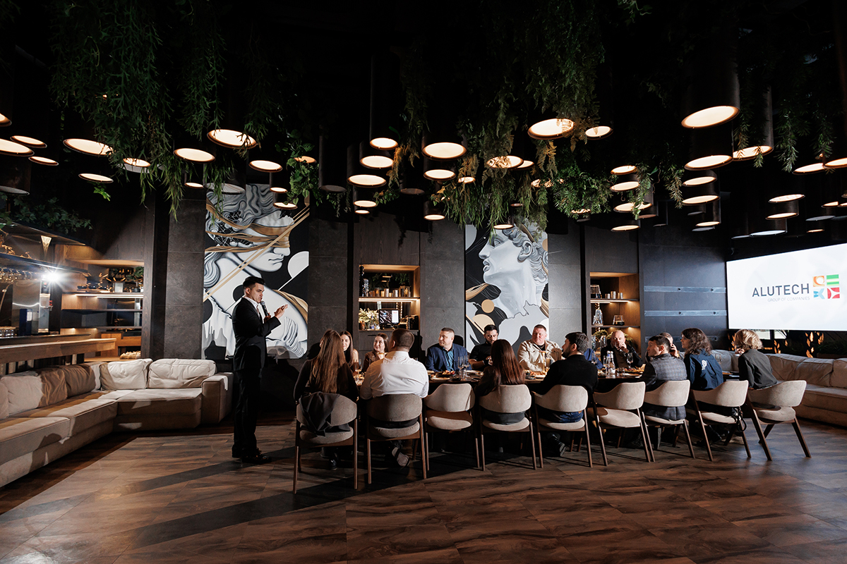 Мероприятие продолжилось в уютном ресторане. Во время официальной части представители «АЛЮТЕХ» — руководитель проектов Тимур Хатит и ведущий маркетолог Валерия Шаповалова — познакомили аудиторию с новыми продуктами бренда.