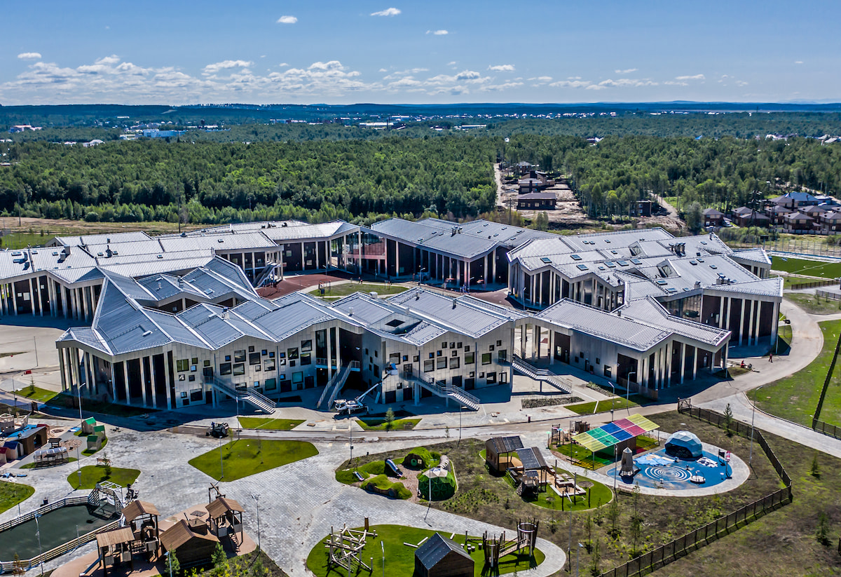 Самой яркой частью саммита стало профессиональное выступление Юлия Борисова, руководителя проектного бюро UNK Project (Москва). Спикер рассказывал об одном из самых сложных и интересных архитектурных проектов, реализованных в Иркутске в 2020 году, — образовательном комплексе «Точка будущего». В его состав входят здания учебного блока, детский сад, медицинский комплекс, а также спортивный и административный корпуса, вписанные в круг диаметром 200 метров под единой кровлей. При возведении этого масштабного объекта применялись оконные системы ALT W72 и стоечно-ригельная серия ALT F50 SSG HL от «АЛЮТЕХ».