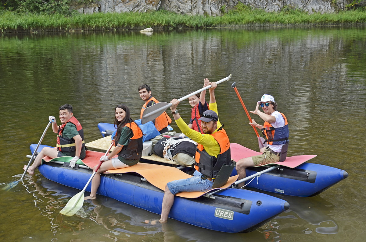 Неофициальная часть. За три дня архитекторы успели не только обсудить профессиональные вопросы, но и ознакомиться с историей освоения Каповой пещеры, посетить музей бортевого пчеловодства, принять участие в сплаве на катамаранах по реке Белой и насладиться прекрасными видами на Уральские горы.