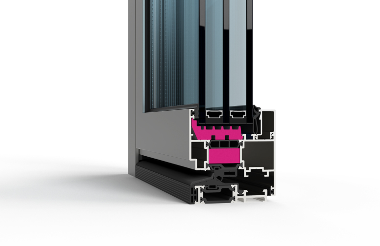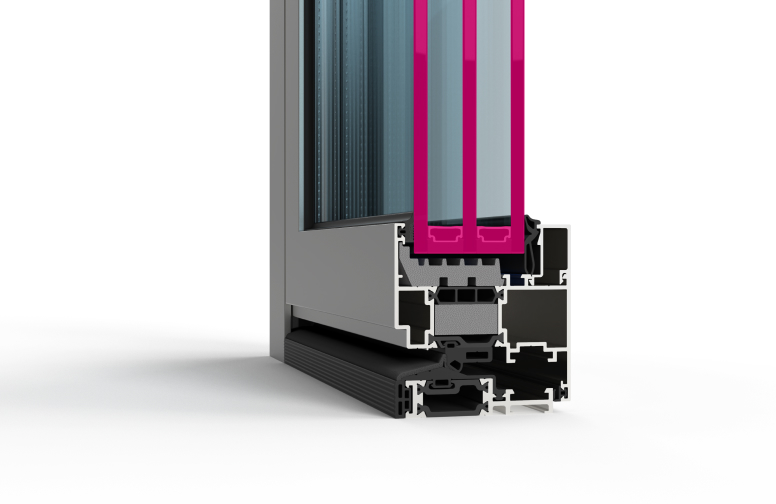 Низкий порог высотой всего 20 мм обеспечивает беспрепятственное перемещение из дома на террасу или балкон и обратно.