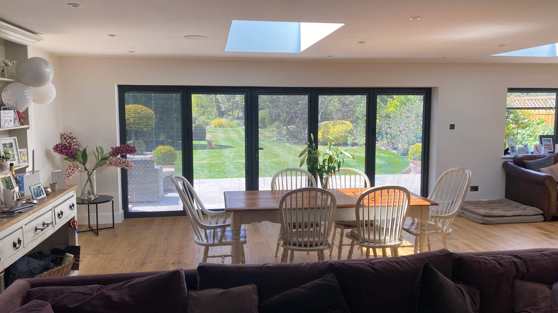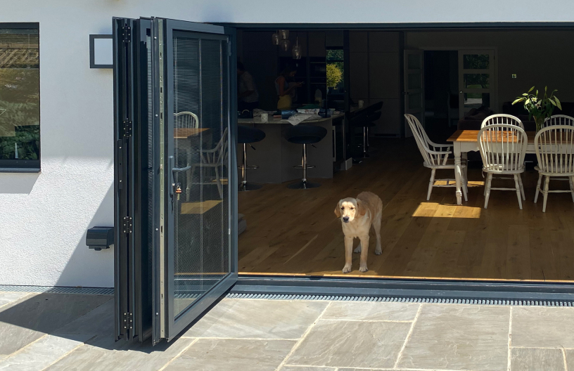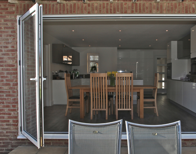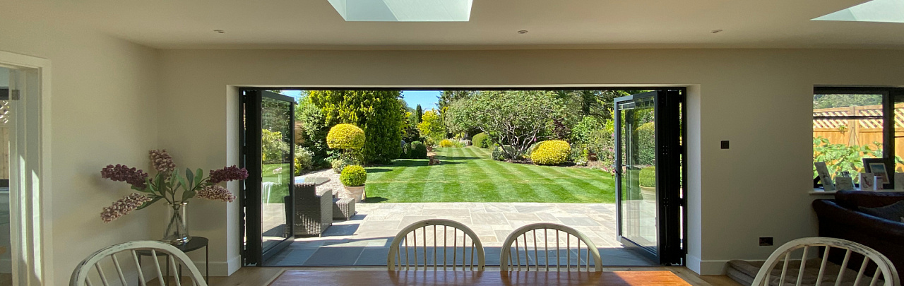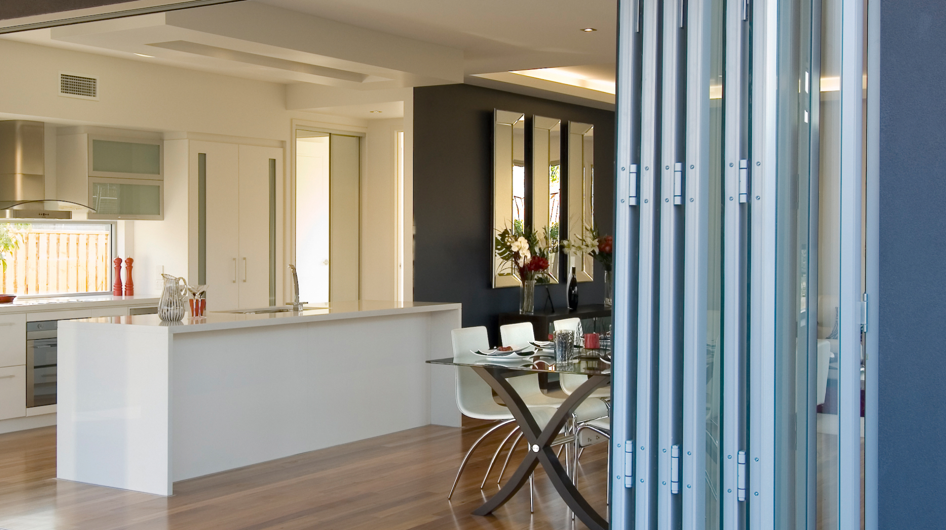 Складные панорамные двери помогают объединить между собой два помещения либо внутреннее пространство дома и окружающий ландшафт, дают возможность по максимуму наполнить комнаты естественным светом.