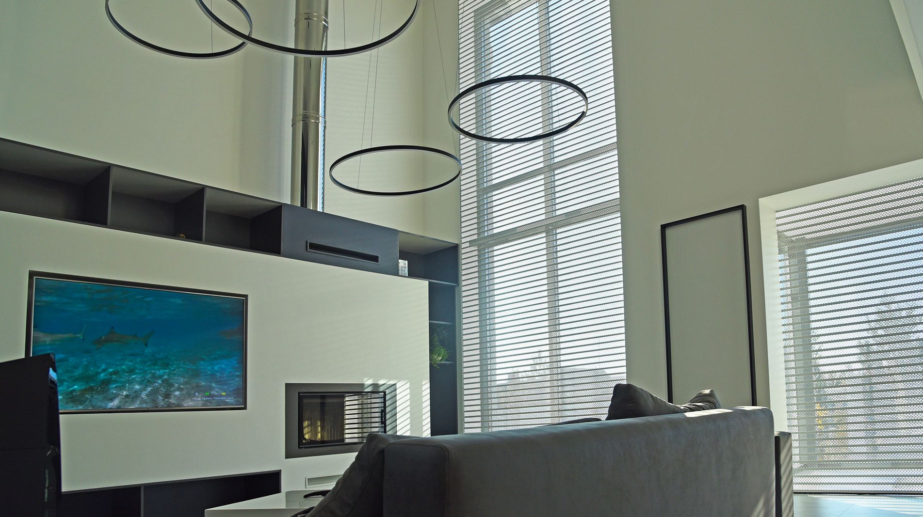 Нетиповое и при этом стильное решение для частного дома. Изящные роллетные решётки защитят окна от злоумышленников, станут украшением экстерьера и интерьера. Они идеально подходят для установки в коттеджах в стиле хай-тек.