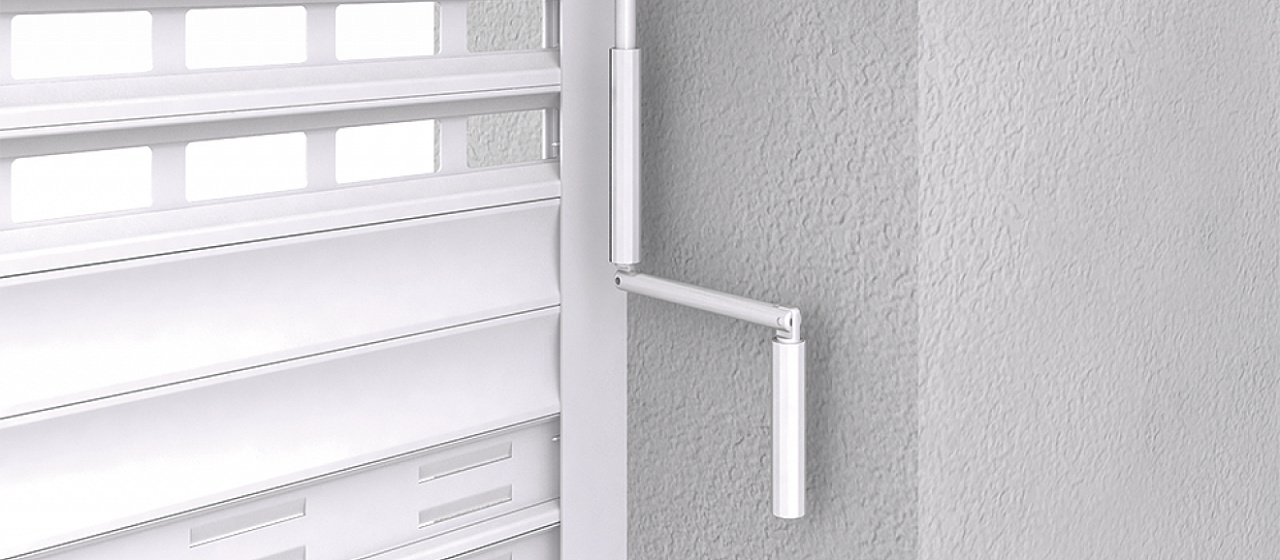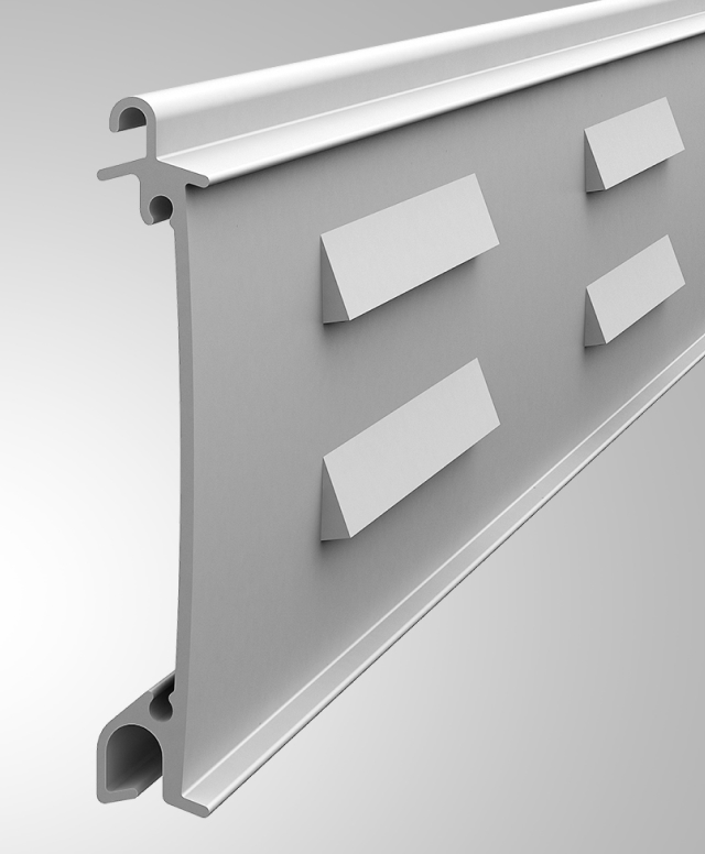 Усиленные направляющие шины с ветровыми зацепами гарантируют высокую прочность роллетных ворот Prestige. Они выдерживают даже сильные порывы ветра.