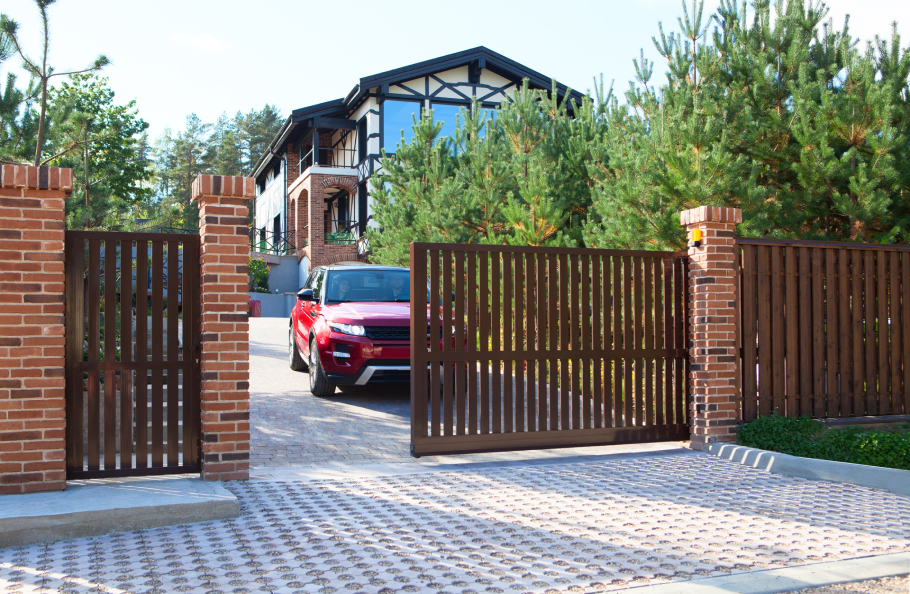 Распашные ворота требуют наличие запаса места на въезде или дворовой территории, равного радиусу движения створок ворот.