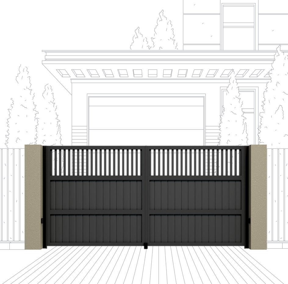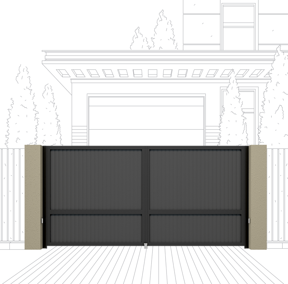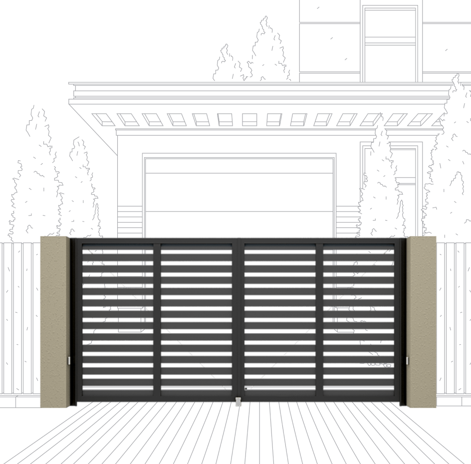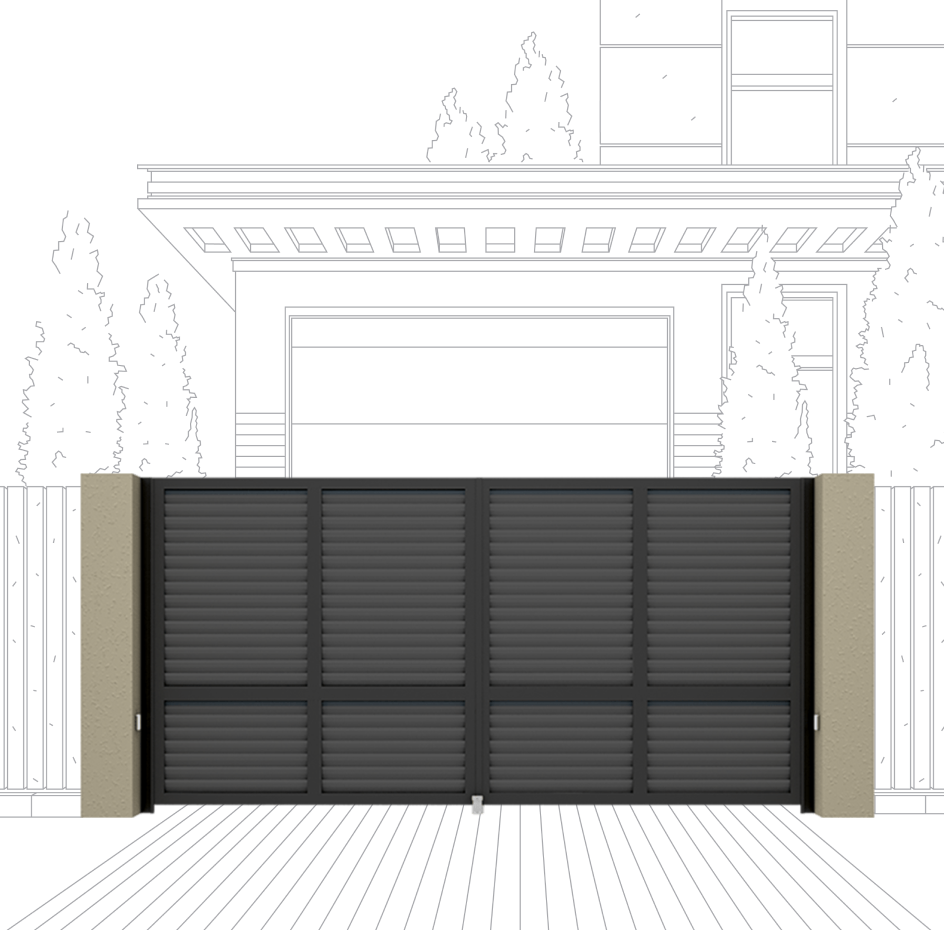 Распашные ворота Prestige изготовлены из алюминия, устойчивого к высокой влажности, перепадам температур и другим погодным факторам. К тому же в конструкции ворот предусмотрен ряд решений, которые делают их износостойкими.