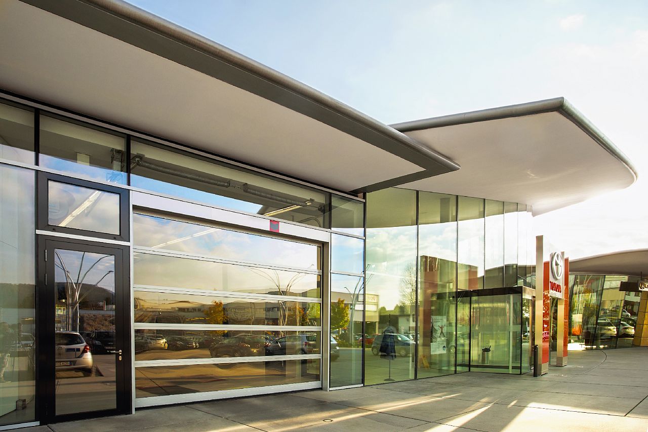 Доступное решение для автосалона. Ворота Trend устойчивы к непогоде и коррозии. Подходят для небольших проемов, где не требуется высокая защита от взлома.