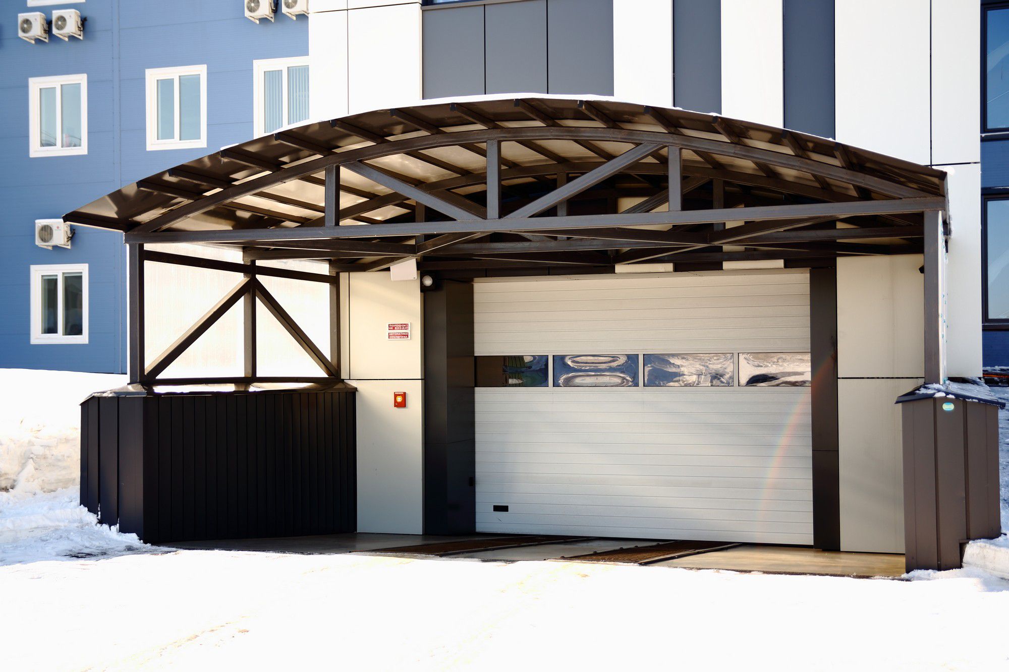 Панорамные ворота «АЛЮТЕХ» могут служить в качестве дополнительной демонстрационной витрины за счет высокой степени прозрачности SAN-пластика, применяемого в панорамных панелях.