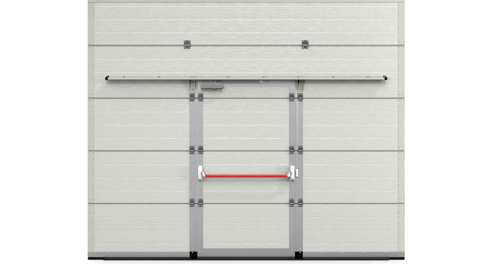 Встроенная калитка в право- или левостороннем исполнении обеспечивает дополнительный вход в производственное помещение и избавляет от необходимости каждый раз поднимать полотно. Решение особенно актуально для объектов с большой проходимостью и численностью персонала.