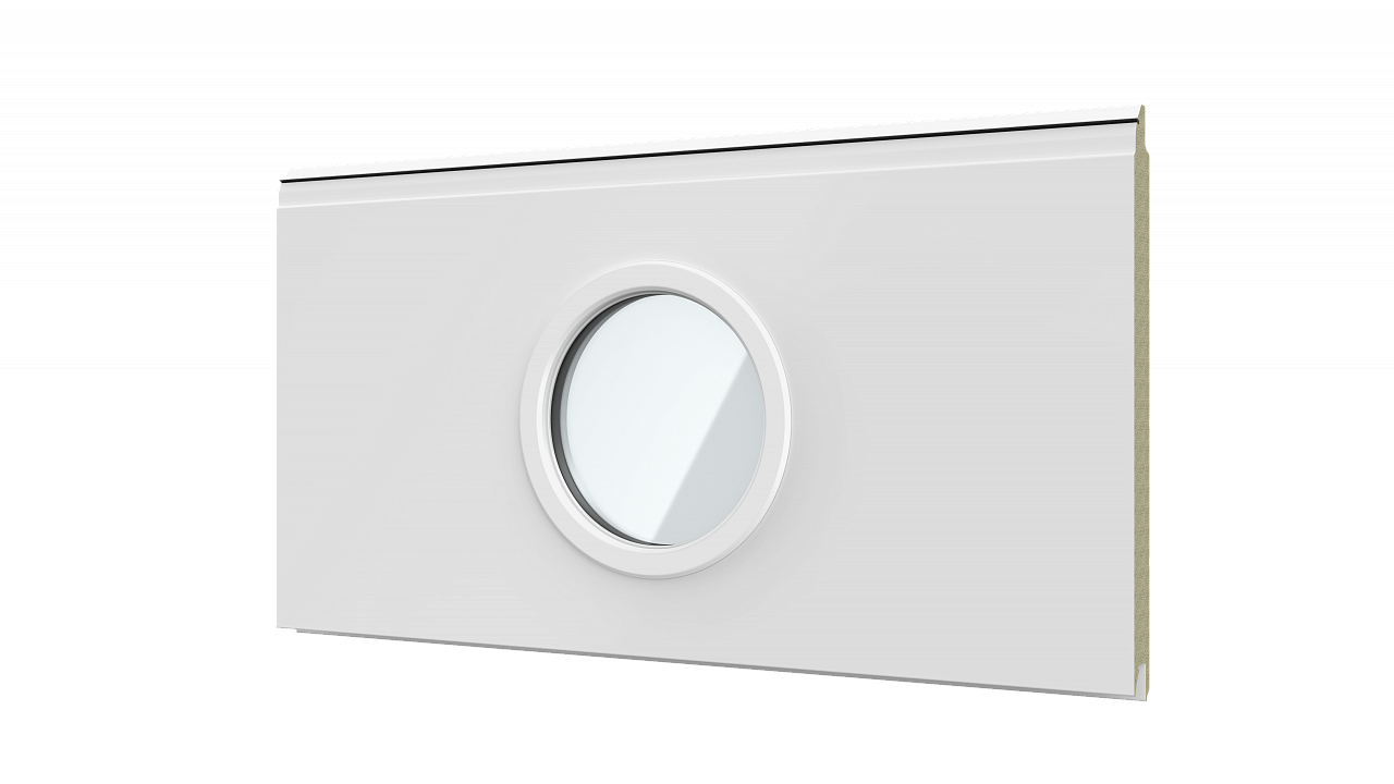 Дверь изготавливается из тех же панелей, что и ворота. Благодаря этому обеспечивается их гармоничное сочетание, а фасад здания приобретает завершенный вид.