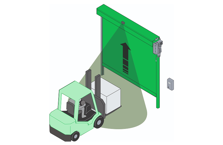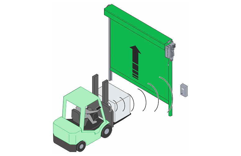 Скоростные рулонные ворота TurboFlex работают только в автоматическом режиме. Для комфортного управления предлагаем комплекты автоматики HS100-R.