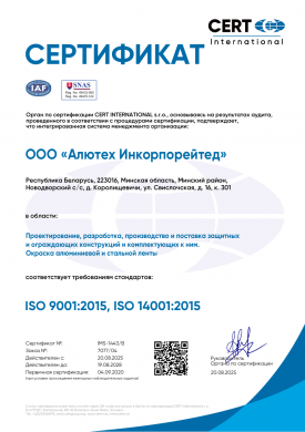 Система менеджмента качества и система менеджмента окружающей среды отвечают требованиям международных стандартов (ISO 9001:2015 и ISO 14001:2015) и сертифицированы в европейских системах сертификации и Национальной системе подтверждения соответствия Республики Беларусь.