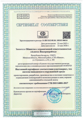 Система менеджмента качества и система менеджмента окружающей среды отвечают требованиям международных стандартов (ISO 9001:2015 и ISO 14001:2015) и сертифицированы в европейских системах сертификации и Национальной системе подтверждения соответствия Республики Беларусь.