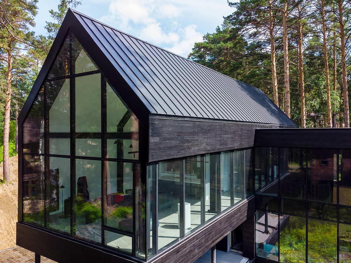 Для поддержания гармонии в интерьере и экстерьере профили снаружи были окрашены в цвет 9007 по шкале RAL («Металлик»), снаружи —7037 («Пыльно-серый»).